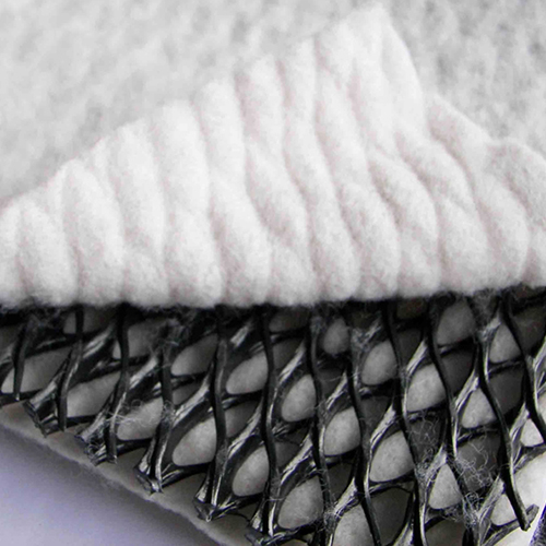 復(fù)合排水網(wǎng)是一種新型的排水土工材料。以高密度聚乙烯(HDPE)為原料,經(jīng)特殊的擠出成型工藝加工而成,具有三層特殊結(jié)構(gòu)。中間筋條剛性大,縱向排列,形成排水通道,上下交叉排列的筋條形成支撐防止土工布嵌入排水通道,即使在很高的荷載下也能保持很高的排水性能。雙面粘接滲水土工布復(fù)合使用,具有“反濾--排水--透氣--保護”綜合性能,是目前最理想的排水材料。